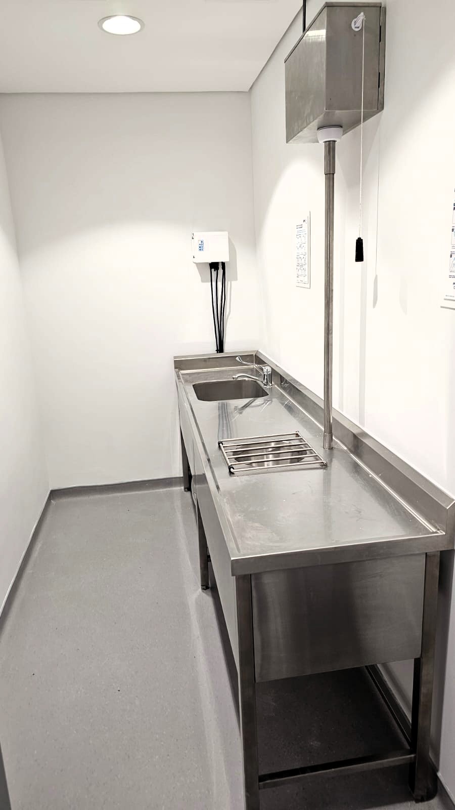 - Hot, Cold Water & drainage modifications to accommodate new WHBs, slop hopper, cleaners sinks