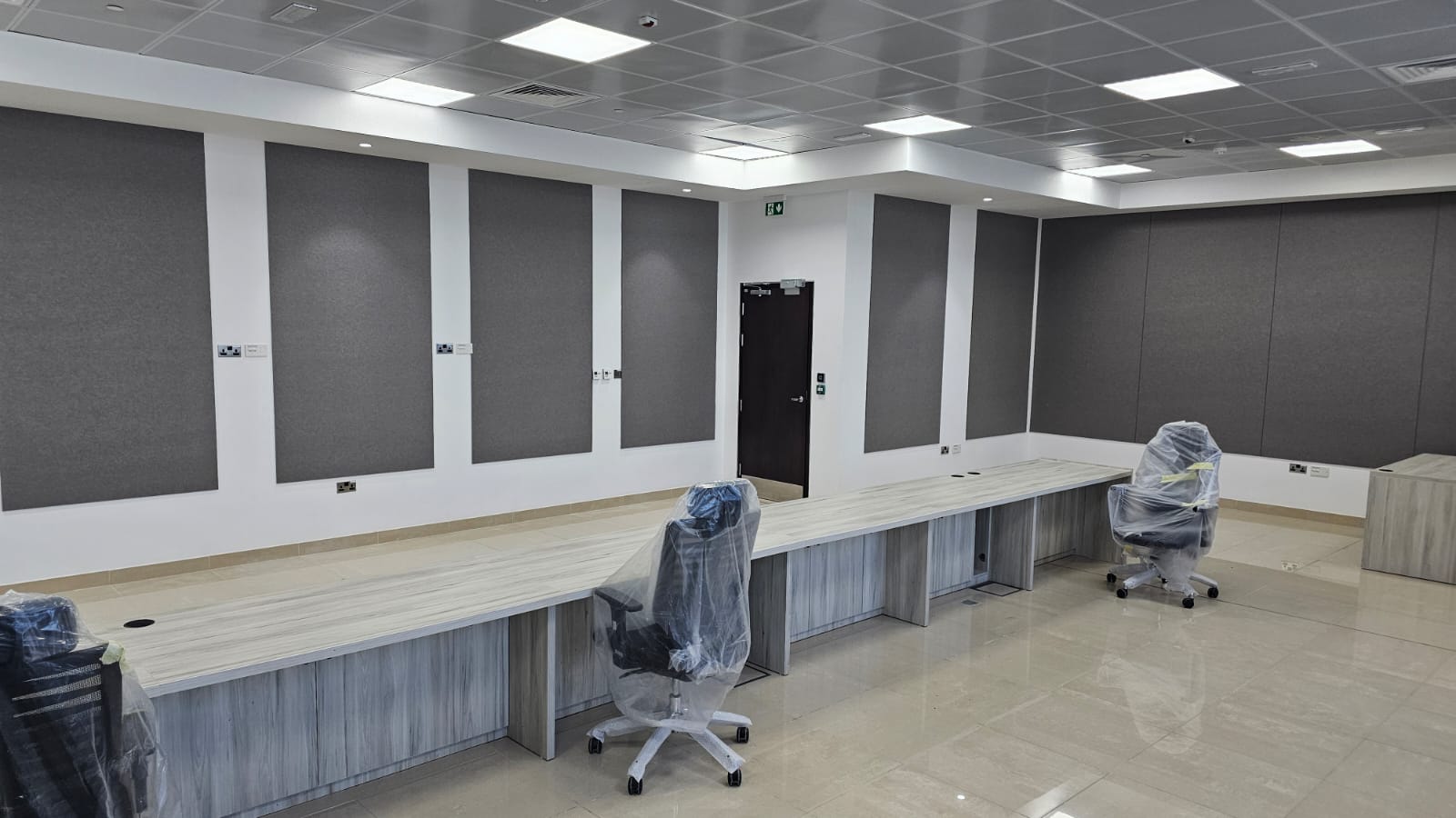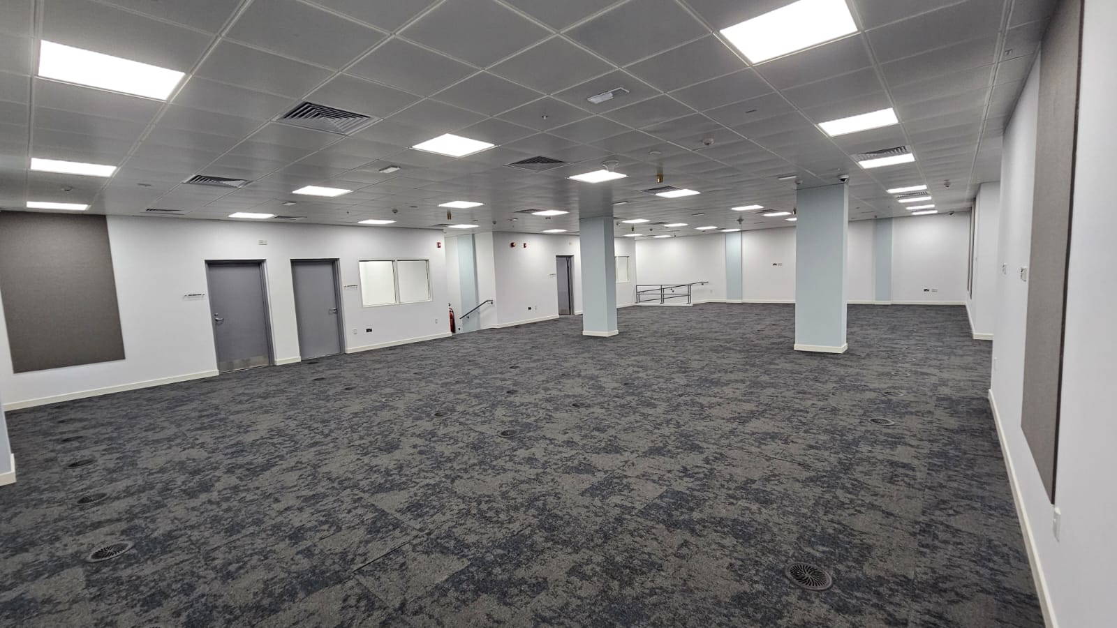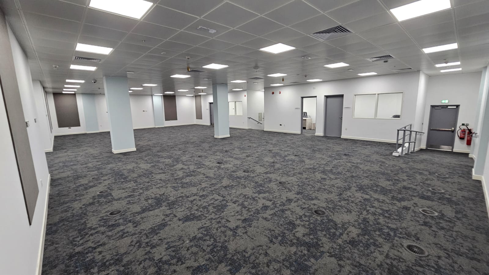 - Internal partitions, raised flooring, internal windows and ceilings (60x60 suspended & gypsum), ceramic flooring, carpet tiles, prayer room carpets, epoxy flooring